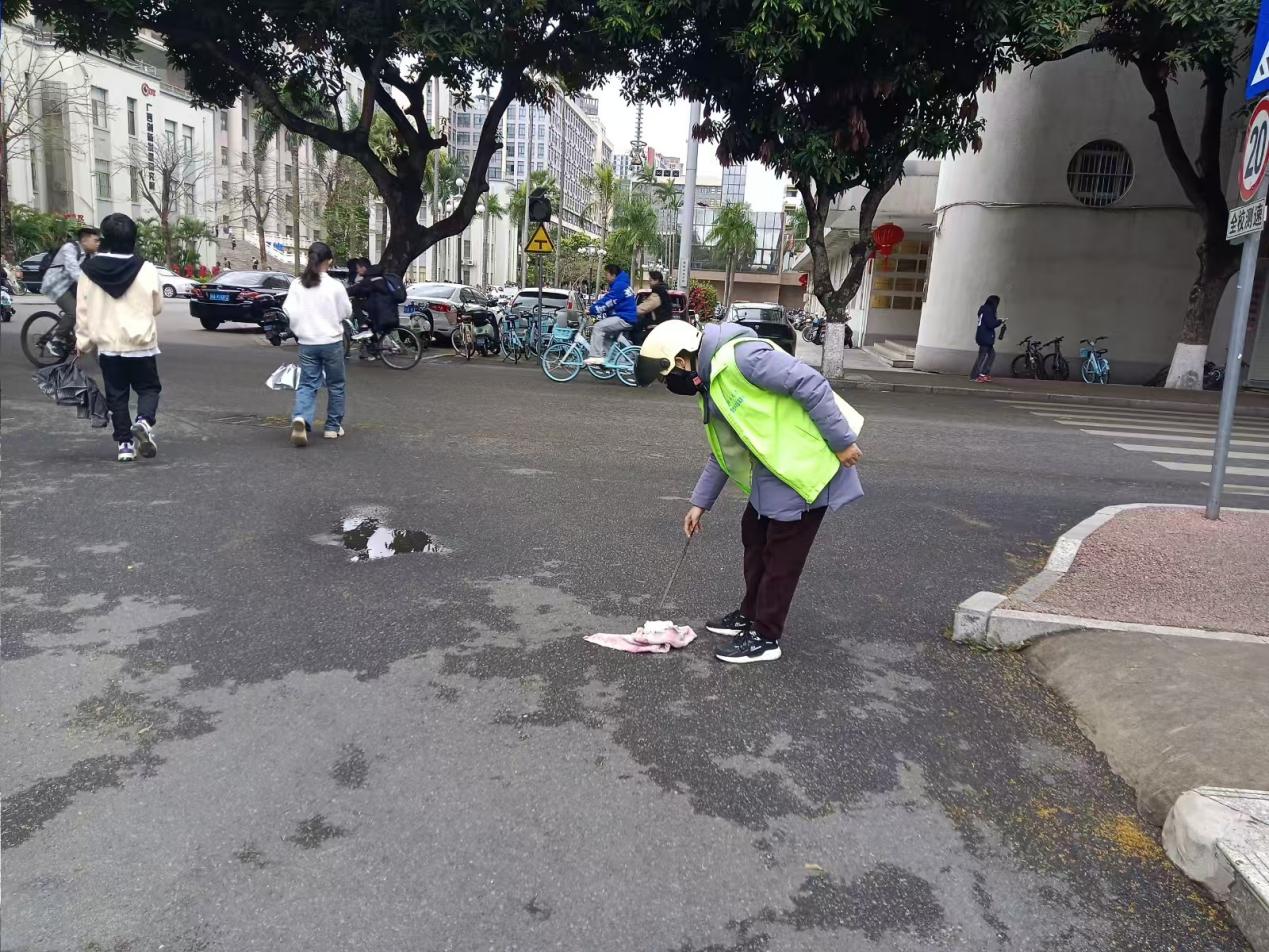 崇文路清理掉落的木棉花
