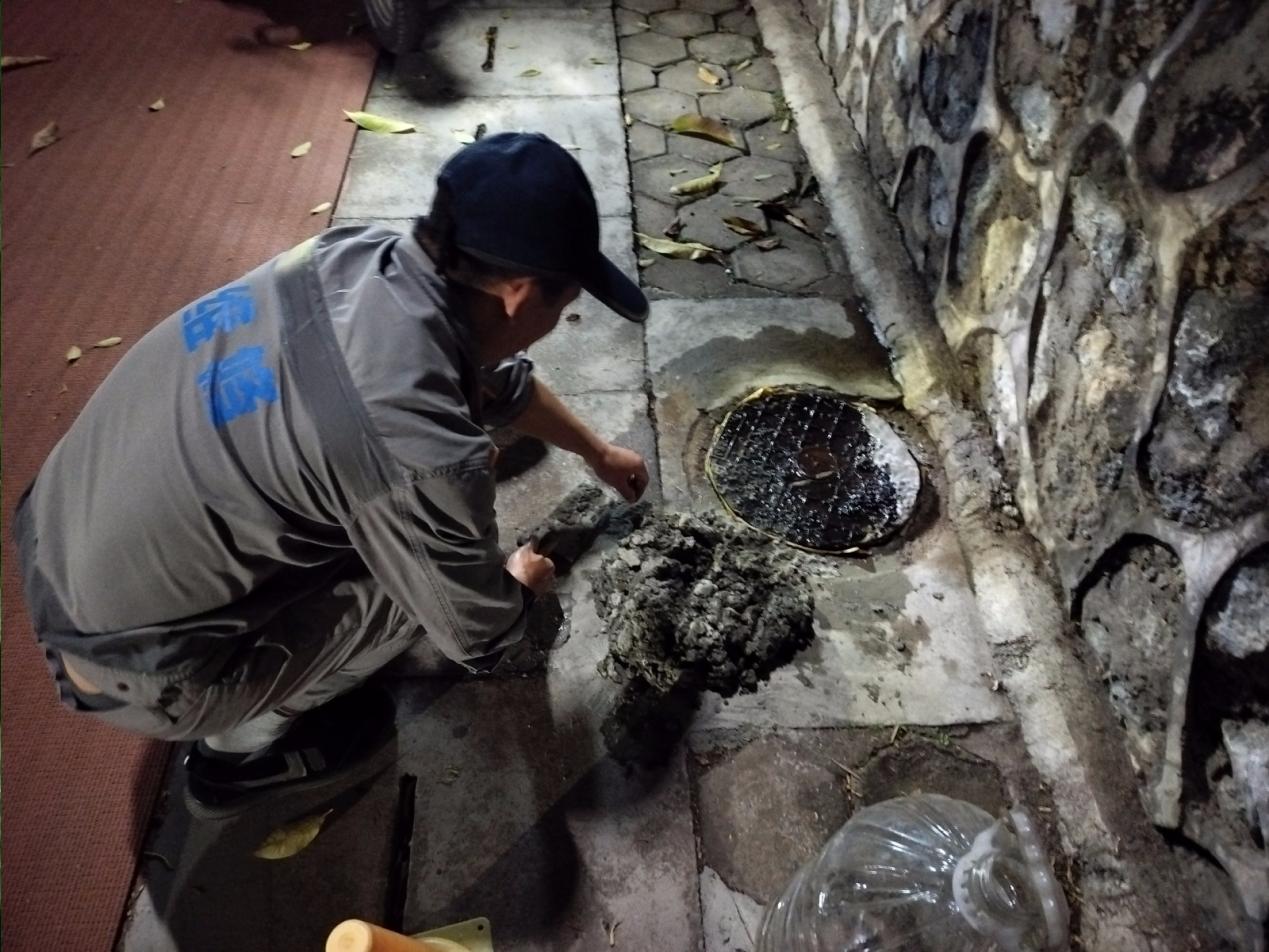 公共区域维修板块继续做好校内公共区域地面、路沿石、路灯、水沟盖板、健身器材等设施排查、维修、抢修工作;及时对校内雨篦子、井盖、管道等排水系统进行排查、疏通。本周对校内公共区域道路路面、路灯、盖板等维修共58处,排水口疏通25次。