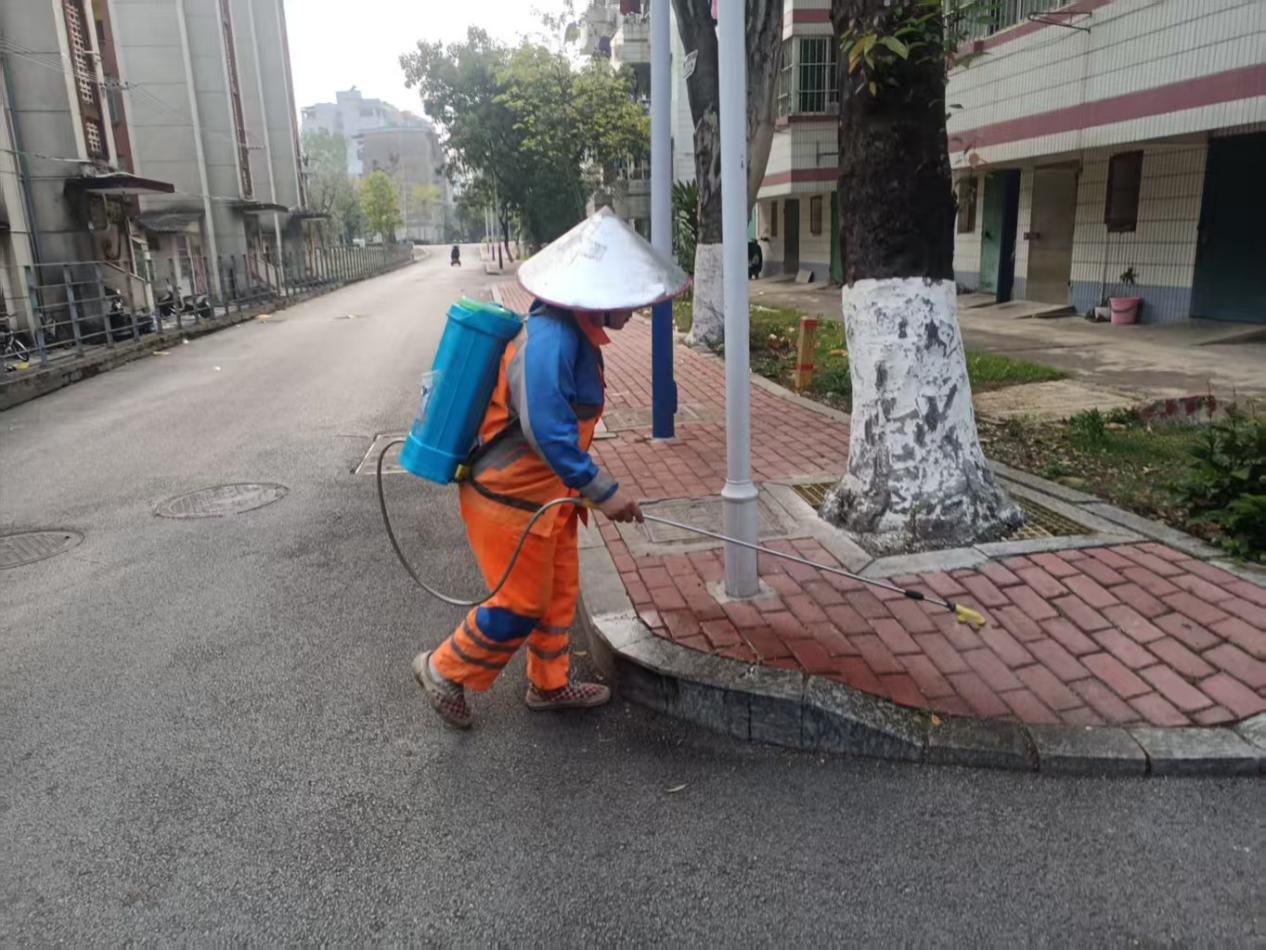 东校园西区人行道喷除草剂