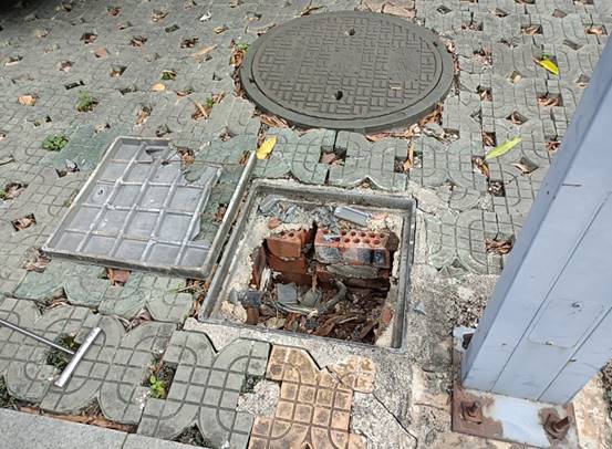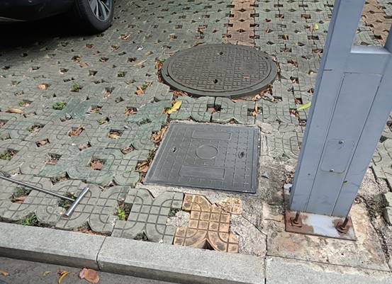 新东园生物医药实验室对面路灯盖板破损更换前
