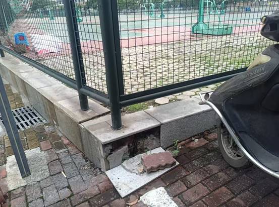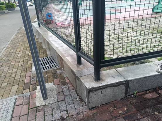 东校园篮球场旁瓷砖破损修复前
