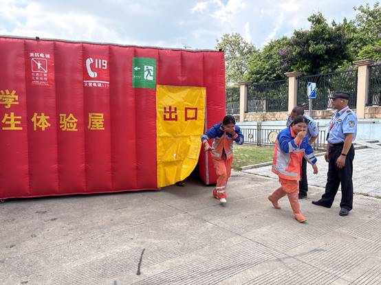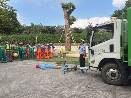 启动仪式结束后,开展应急安全实战演练。保卫处工作人员进行火灾隐患知识讲解与应急逃生要点培训,随后组织应急逃生演练和消防演练。而南宁市公安局交警八大队的警官演示车辆转弯盲区风险及事故应急处置流程,通过实景模拟让参演人员了解规范操作的重要性。