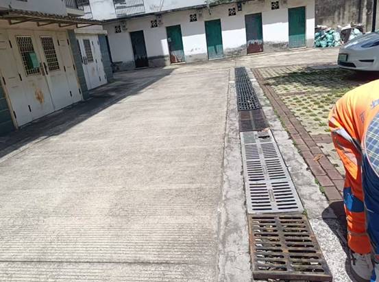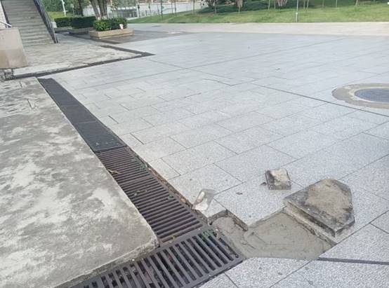 公共区域维修板块继续做好校内公共区域地面、路沿石、路灯、水沟盖板、健身器材等设施排查、维修、抢修工作;及时对校内雨篦子、井盖、管道等排水系统进行排查、疏通。本周对校内公共区域道路路面、路灯、盖板等维修共47处,排水口疏通25次。