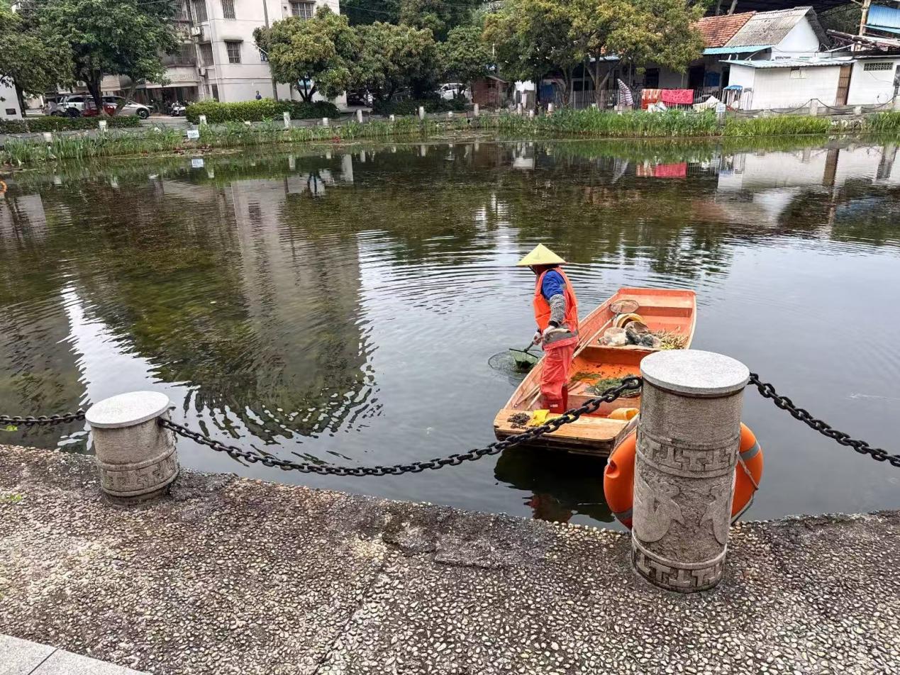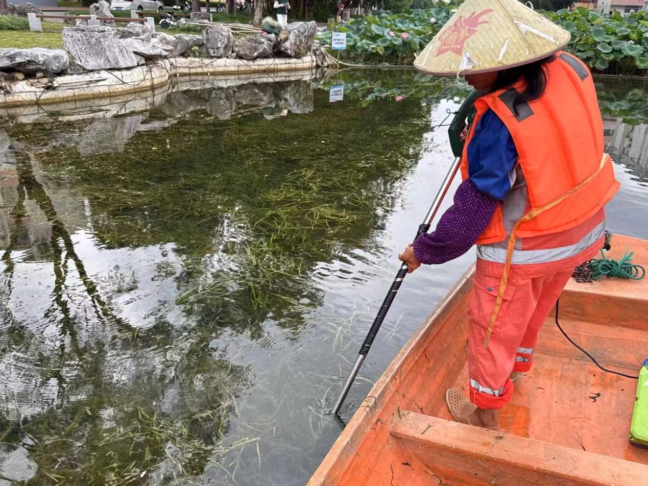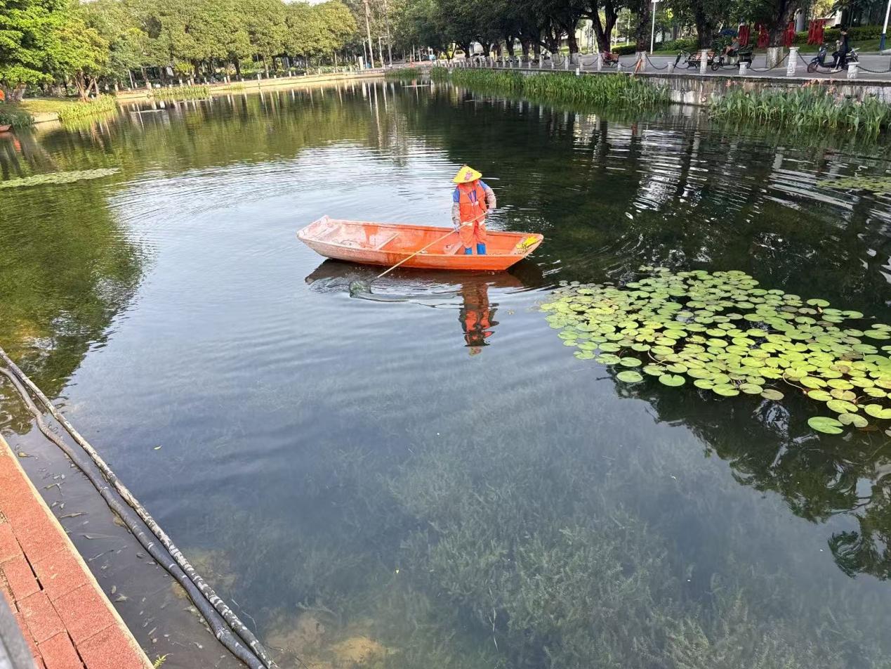 湖泊运维员每日进行湖面保洁、清理湖面油膜垃圾,保持水面干净整洁;对镜湖、鉴湖、翠湖、荷湖、莲湖、爱莲湖、彩蝶湖、大碧云湖、月牙湖、紫荆湖等湖泊驳岸花带修剪;镜湖、鉴湖、翠湖、春花湖、秋实湖、莲湖、荷湖、爱莲湖、彩蝶湖、大、小碧云湖、观月湖、绿榕湖进行青苔打捞;对秋实湖、西校园假山水池、汇学堂景观池、四教景观池打捞保洁,修剪观月湖、鉴湖、荷湖、莲湖、小碧云湖、大碧云湖枯萎荷叶,各湖病虫害防治,小碧云湖、鉴湖水草修剪,翠湖、月牙湖补种水草。