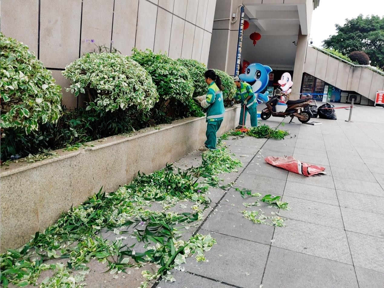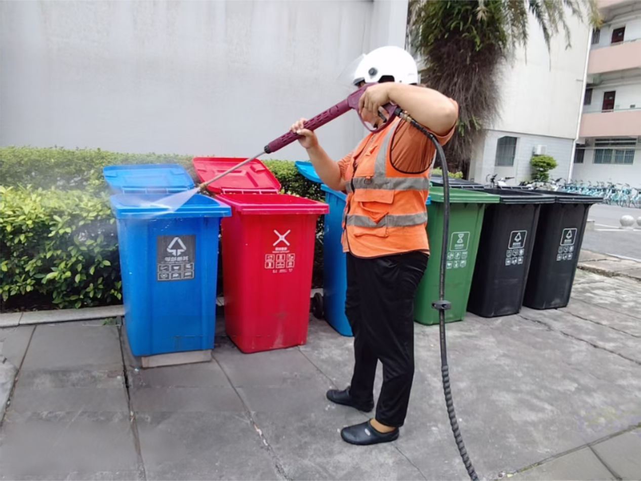 垃圾清运:按规定时间路线清运校园垃圾,做到垃圾日产日清,并对垃圾桶和垃圾箱进行清洗和消杀。本周清运生活垃圾451.9吨,大件垃圾13.8吨,绿化垃圾235立方米。
