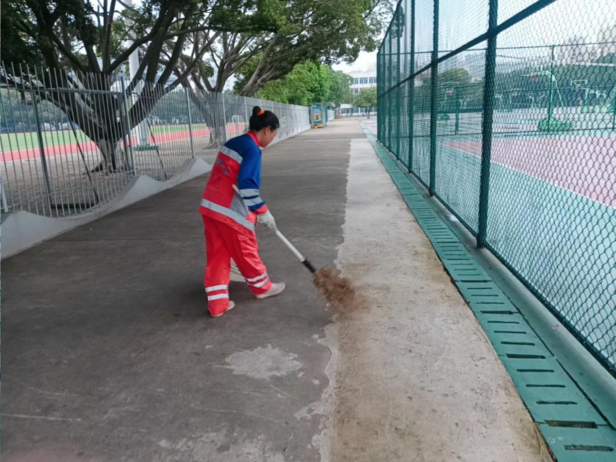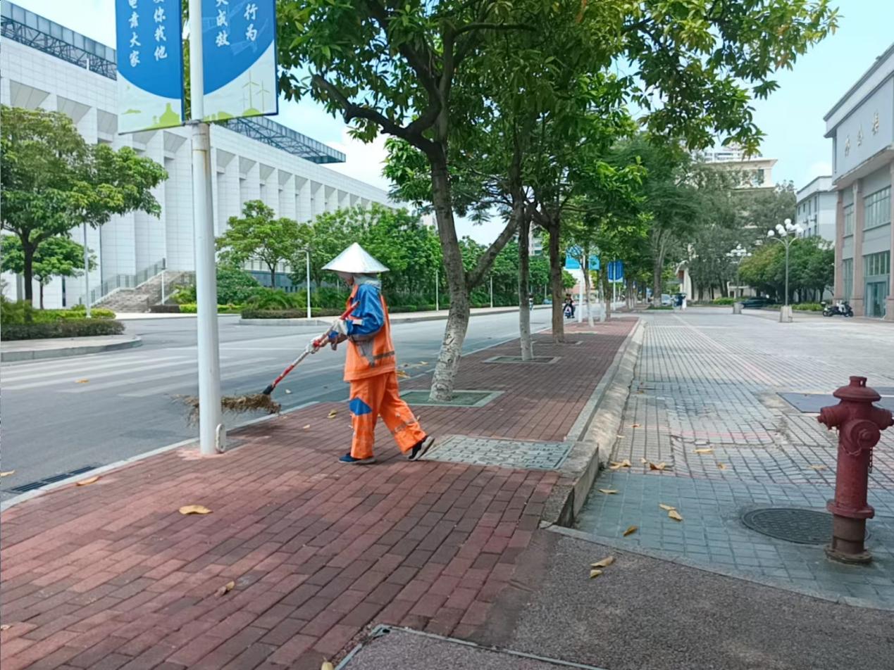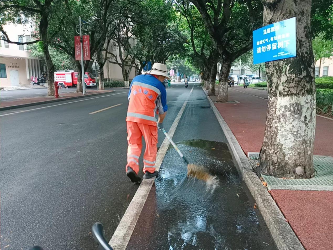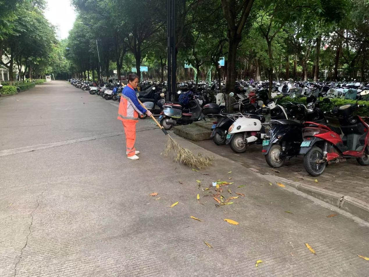 本周环卫保洁人员继续做好校园各区域环境卫生清扫保洁工作,每日清晨五点半开始采用“人机结合”的方式清扫校园各大校道及支道,日常及时清理绿地枯枝落叶和白色垃圾,清洗铜像、果皮箱、清理水沟、雨篦子等,保持校园环境干净整洁。环卫保洁总面积近80万㎡,人均保洁6800㎡。