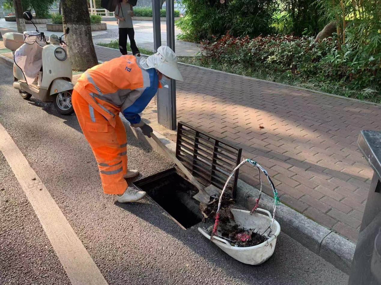 公共区域维修板块继续做好校内公共区域地面、路沿石、路灯、水沟盖板、健身器材等设施排查、维修、抢修工作;及时对校内雨篦子、井盖、管道等排水系统进行排查、疏通。本周对校内公共区域道路路面、路灯、盖板等维修共43处,排水口疏通25次。