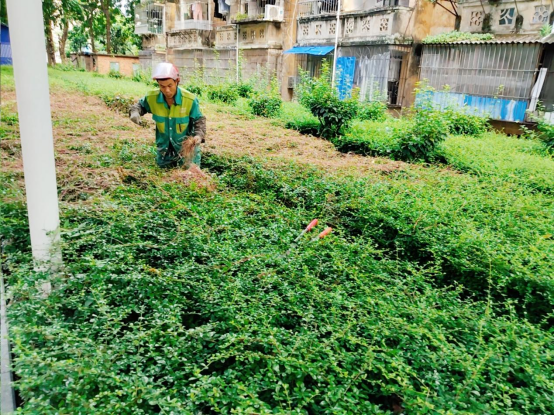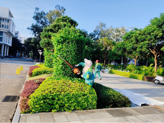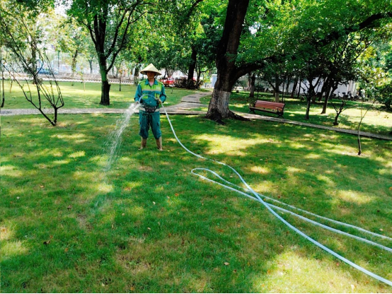 暑假期间绿化养护工人持续做好校园绿化养护工作,具体工作内容如下: