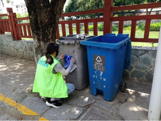 垃圾分类督导:按计划进行垃圾分类督导和宣传、垃圾分类宣传展板清洁和宣传单派发等工作,对校园进行全面巡查,及时处理发现的问题。