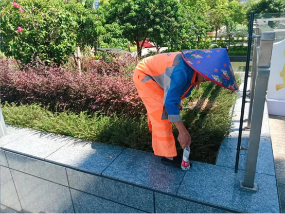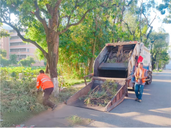 垃圾清运:按规定时间路线清运校园垃圾,做到垃圾日产日清,并对垃圾桶和垃圾箱进行清洗和消杀。暑假期间清运生活垃圾2728.6吨,大件垃圾63.8吨,绿化垃圾2357立方米。