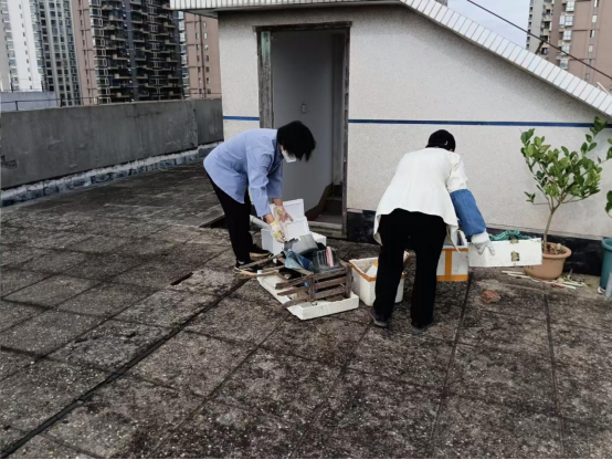 清理住宅楼顶积水