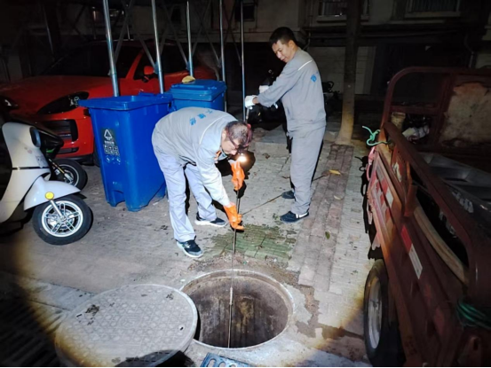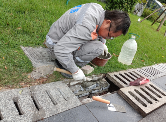 公共区域维修板块继续做好校内公共区域地面、路沿石、路灯、水沟盖板、健身器材等设施排查、维修、抢修工作;及时对校内雨篦子、井盖、管道等排水系统进行排查、疏通。本周对校内公共区域道路路面、路灯、盖板等维修共25处,排水口疏通23次。
