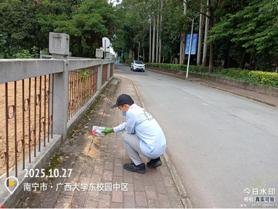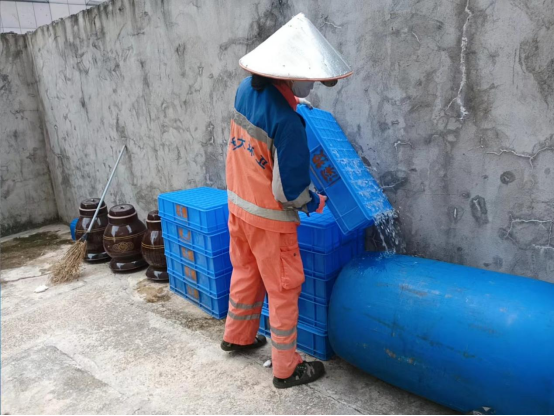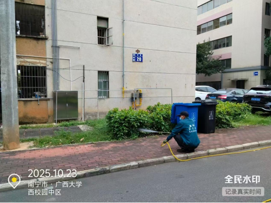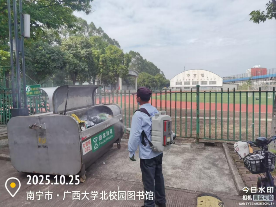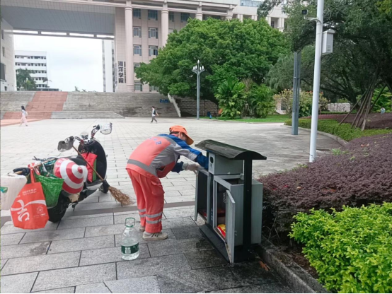 垃圾清运:按规定时间路线清运校园垃圾,做到垃圾日产日清,并对垃圾桶和垃圾箱进行清洗和消杀。本周清运生活垃圾339.6吨,大件垃圾10.5吨,绿化垃圾222立方米。