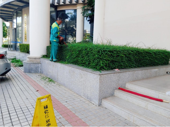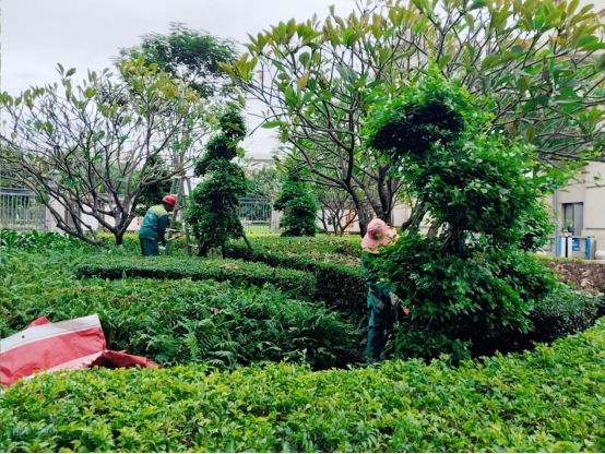 绿地日常养护工作:校办、汇学堂、育才广场、南大门、汇学堂、办公楼、新闻楼、语言中心、计算机学院、网络学院、校办、工商管理学院内庭、西校园中区、西校园北区、农学院、六教、生科院西面、农学院南面、艺术学院北面、东校园中区22~30栋、北校园大门、东高9栋、东校园西区4栋、大学生活中心等区域草坪修剪、绿篱修剪、病虫害防治消杀、松土、施肥、淋水、菟丝子清理、落叶清理等养护工作。