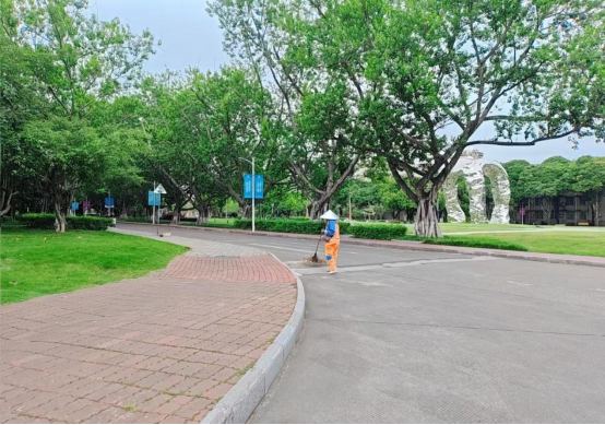 本周环卫保洁人员继续做好校园各区域环境卫生清扫保洁工作,每日清晨五点半开始采用“人机结合”的清扫校园的各大校道及支道,日常及时清理绿地枯枝落叶和白色垃圾,清洗铜像、果皮箱、清理水沟、雨篦子等,保持校内环境干净整洁。环卫保洁总面积近80万㎡,人均保洁6800㎡。