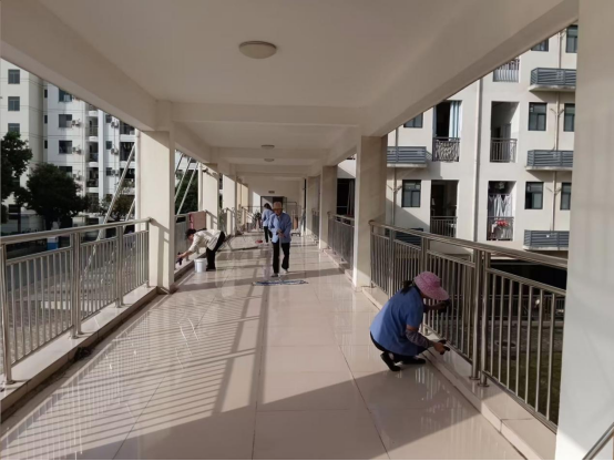 完成238栋教职工住宅楼的日常保洁工作;对教职工住宅区公共区域的路灯、盖板等水电设施进行巡查及维修;对服务范围内的管道进行疏通工作。每天24小时接听报修电话,安排人员上门进行日常维修,并进行电话回访。配合水电改造工程,按照规定完成上门抄写水电表工作,并按计划上门或电话进行水电费欠费催缴工作。本周处理教职工住宅区、公共区域报修共166单;清理教职工住宅区公共区域杂物6处,并对乱堆乱放的杂物或建筑垃圾等不能立即解决的张贴书面整改通知书,限期整改。