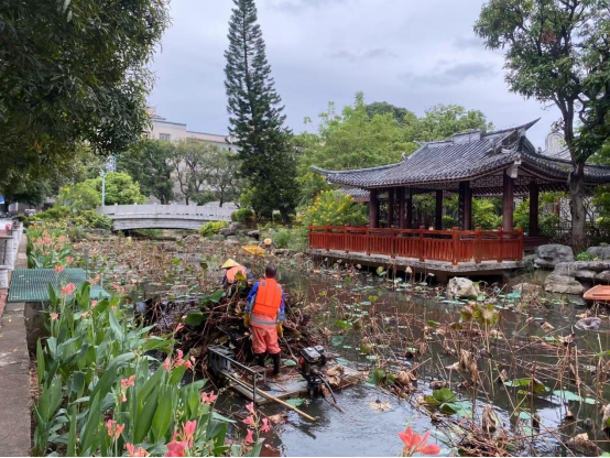 湖泊运维员每日进行湖面保洁、湖面油膜垃圾清理,保持水面干净整洁;对镜湖、鉴湖、翠湖、荷湖、莲湖、爱莲湖、彩蝶湖、大碧云湖、月牙湖、紫荆湖进行花带修剪;对镜湖、鉴湖、翠湖、春花湖、莲湖、爱莲湖、彩蝶湖、大碧云湖、小碧云湖、绿榕湖进行打捞青苔;对西校园假山景观池、汇学堂周边景观池、四教内庭景观池、劝学岛景观池打捞保洁;绿榕湖、观月湖、月牙湖、小碧云湖、大碧云湖枯荷叶修剪;对大碧云湖、小碧云湖、观月湖、月牙湖水质调理。