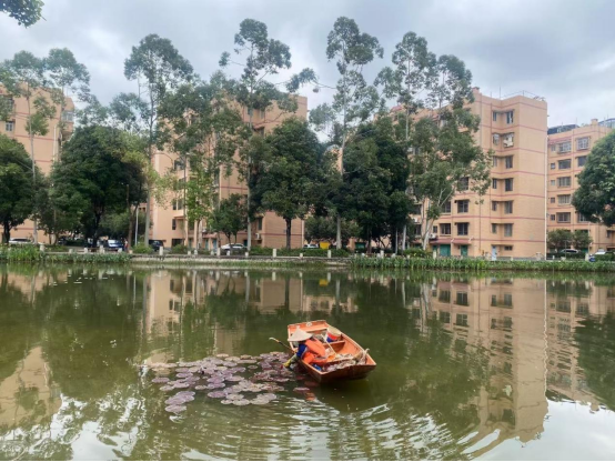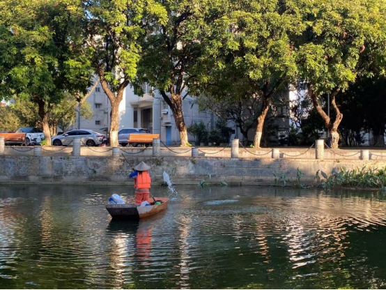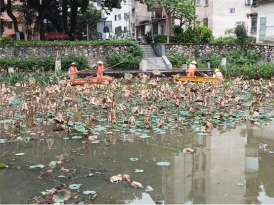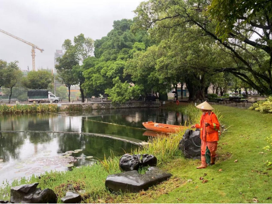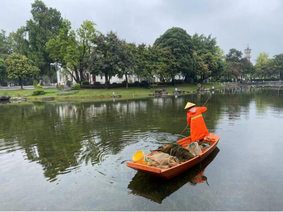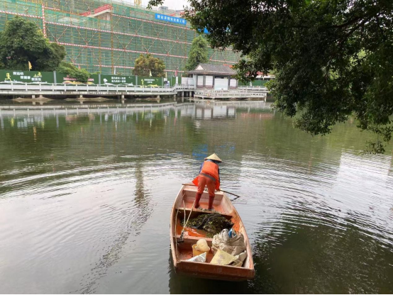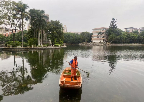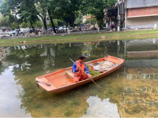 湖泊运维员每日进行湖面保洁、湖面油膜垃圾清理,保持水面干净整洁:对镜湖、鉴湖、翠湖、荷湖、莲湖、爱莲湖、彩蝶湖、大碧云湖、月牙湖、紫荆湖花带修剪;对镜湖、鉴湖、翠湖、春花湖、莲湖、爱莲湖、彩蝶湖、大碧云湖、小碧云湖、绿榕湖进行打捞青苔;对春华湖补种水草;对体育场西北角假山景观池、汇学堂周边景观池、四教内庭景观池、劝学岛景观池进行打捞保洁;对爱莲湖青苔防控,对爱莲湖、秋实湖枯荷叶修剪,对爱莲湖、小碧云湖、观月湖水质调理。