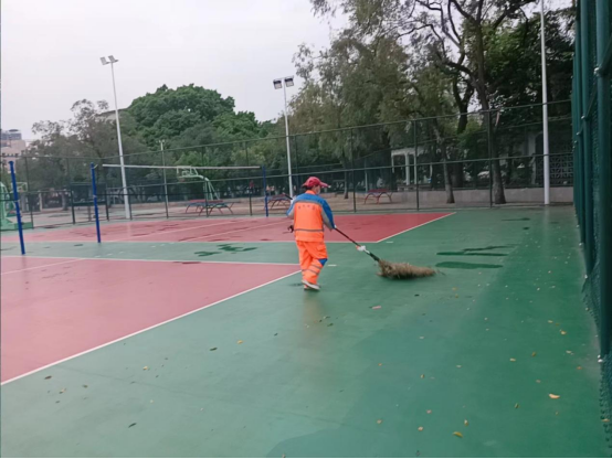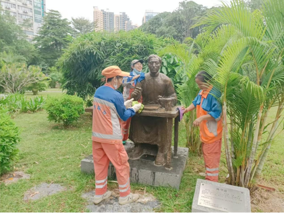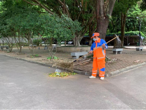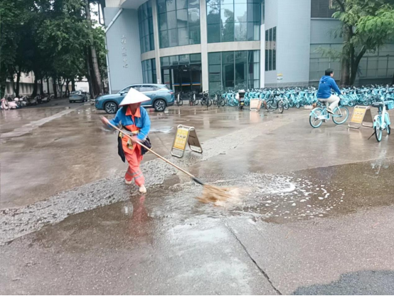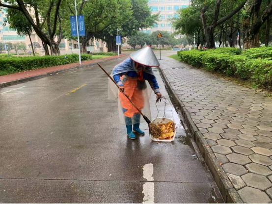 本周环卫保洁人员继续做好校园各区域环境卫生清扫保洁工作,每日清晨五点半开始采用“人机结合”的方式清扫校园的各大校道及支道,日常及时清理绿地枯枝落叶和白色垃圾,清洗铜像、果皮箱,清理水沟、雨篦子等,保持校内环境干净整洁。环卫保洁总面积近80万㎡,人均保洁6800㎡。