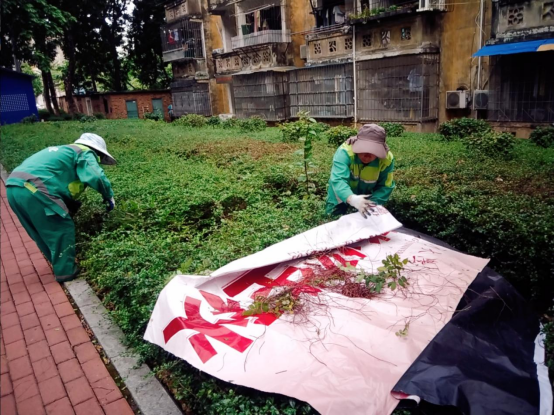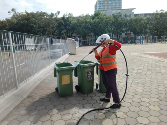 垃圾清运:按规定时间路线清运校园垃圾,做到垃圾日产日清,并对垃圾桶和垃圾箱进行清洗和消杀。本周清运生活垃圾362.5吨,大件垃圾11.6吨,绿化垃圾160立方米。
