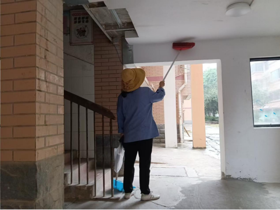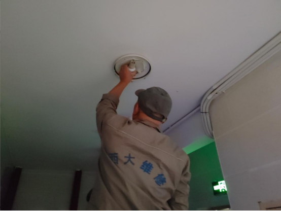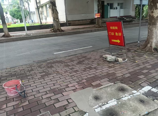 公共区域维修板块继续做好校内公共区域地面、路沿石、路灯、水沟盖板、健身器材等设施排查、维修、抢修工作;及时对校内雨篦子、井盖、管道等排水系统进行排查、疏通。本周对校内公共区域道路路面、路灯、盖板等维修共25处,排水口疏通23次。