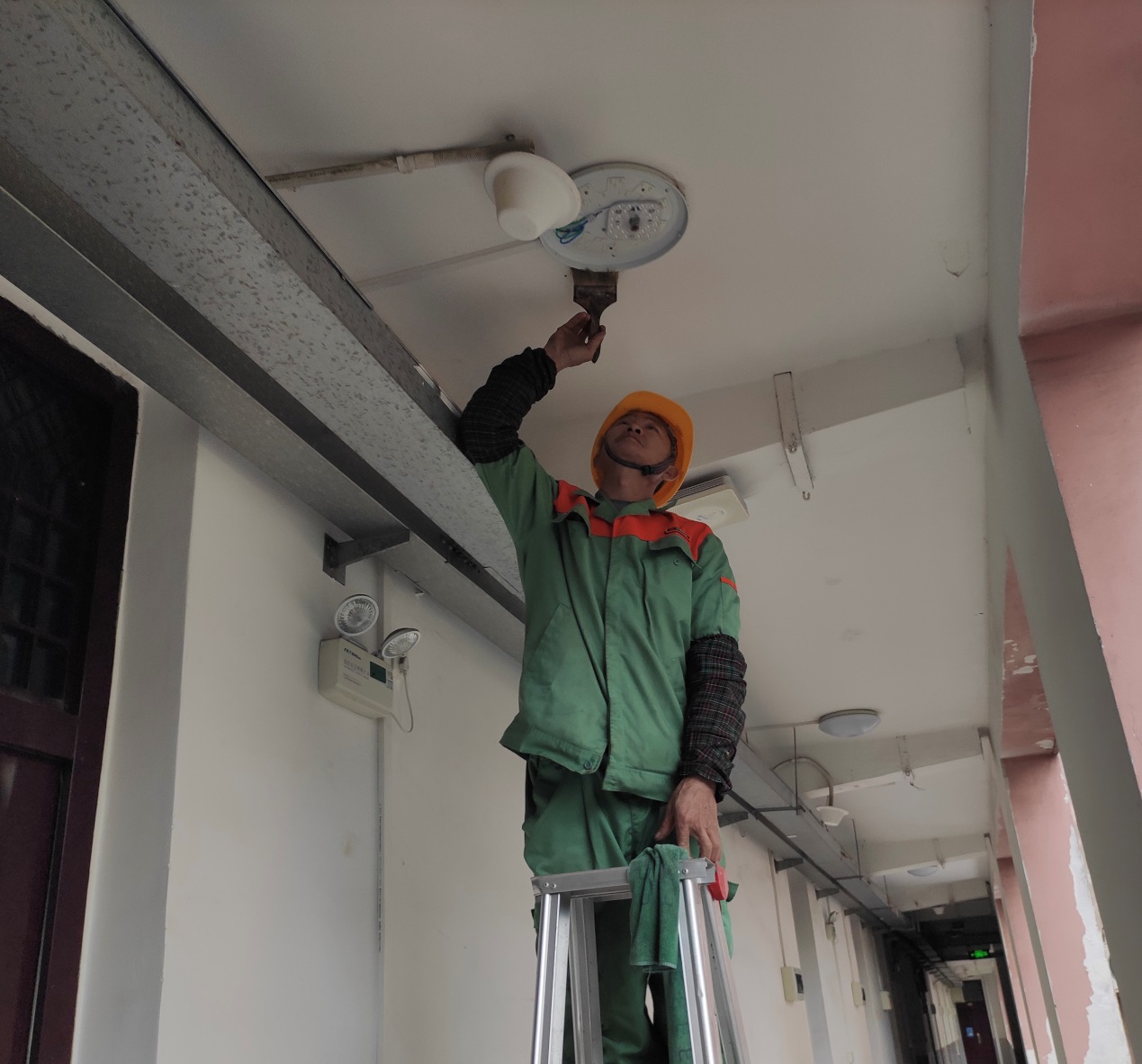 四是认真做好公共楼宇及教学楼服务保障工作。开学前组织工作人员对学校公共楼宇进行清洁工作,做好教室、走廊、卫生间等公共场所的卫生保洁和消毒保障工作,对全校公共教室多媒体设备进行调试检修,开展教学楼桌椅、多媒体设施设备、照明设备、墙面脱落等维修工作,打造干净整洁的教学环境和性能良好的设备实施条件。