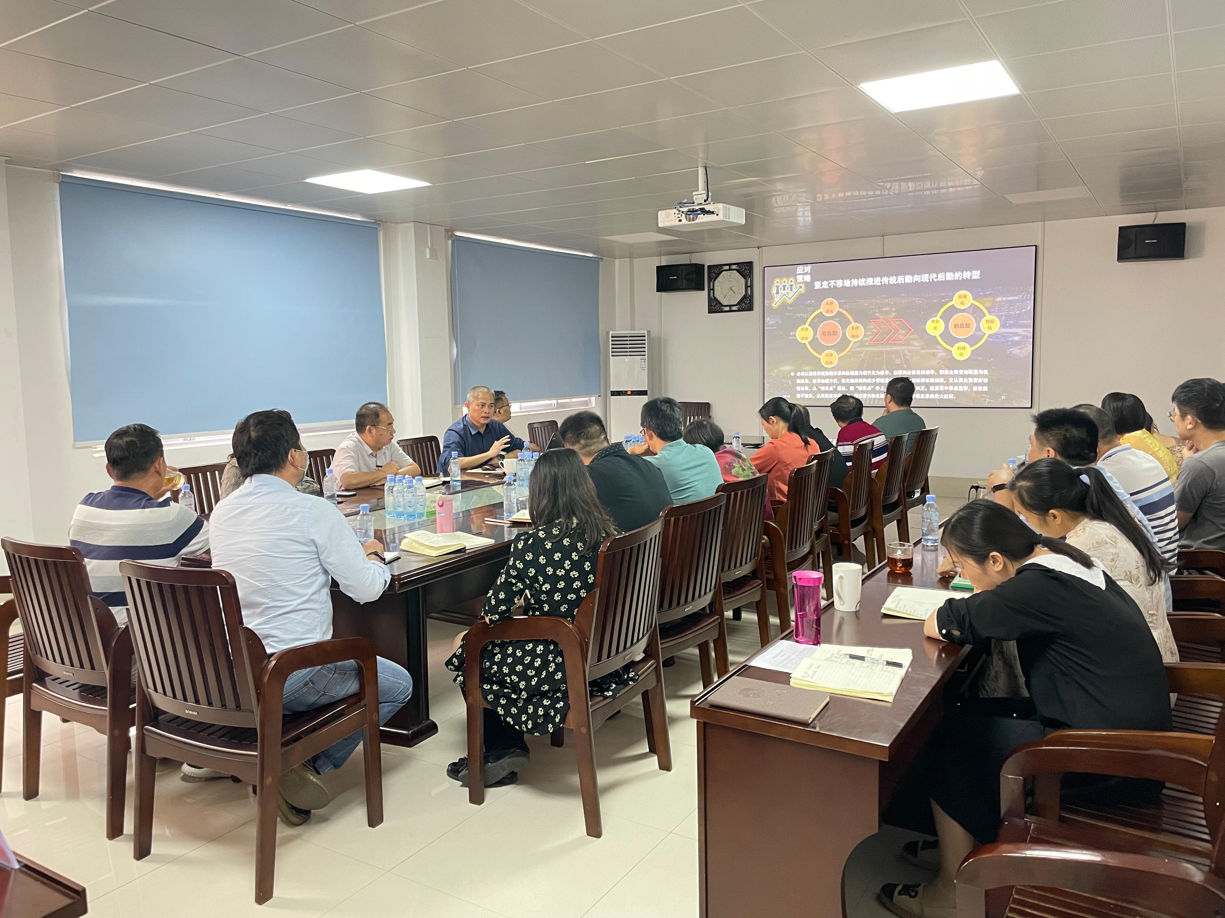 2022年10月18日下午,校党委常委、副校长刘向到后勤基建处作题名为《beats365亚洲版后勤保障现状及展望》专题报告。后勤基建处的相关岗位人员参加培训会。会议由严壮锋副处长主持。