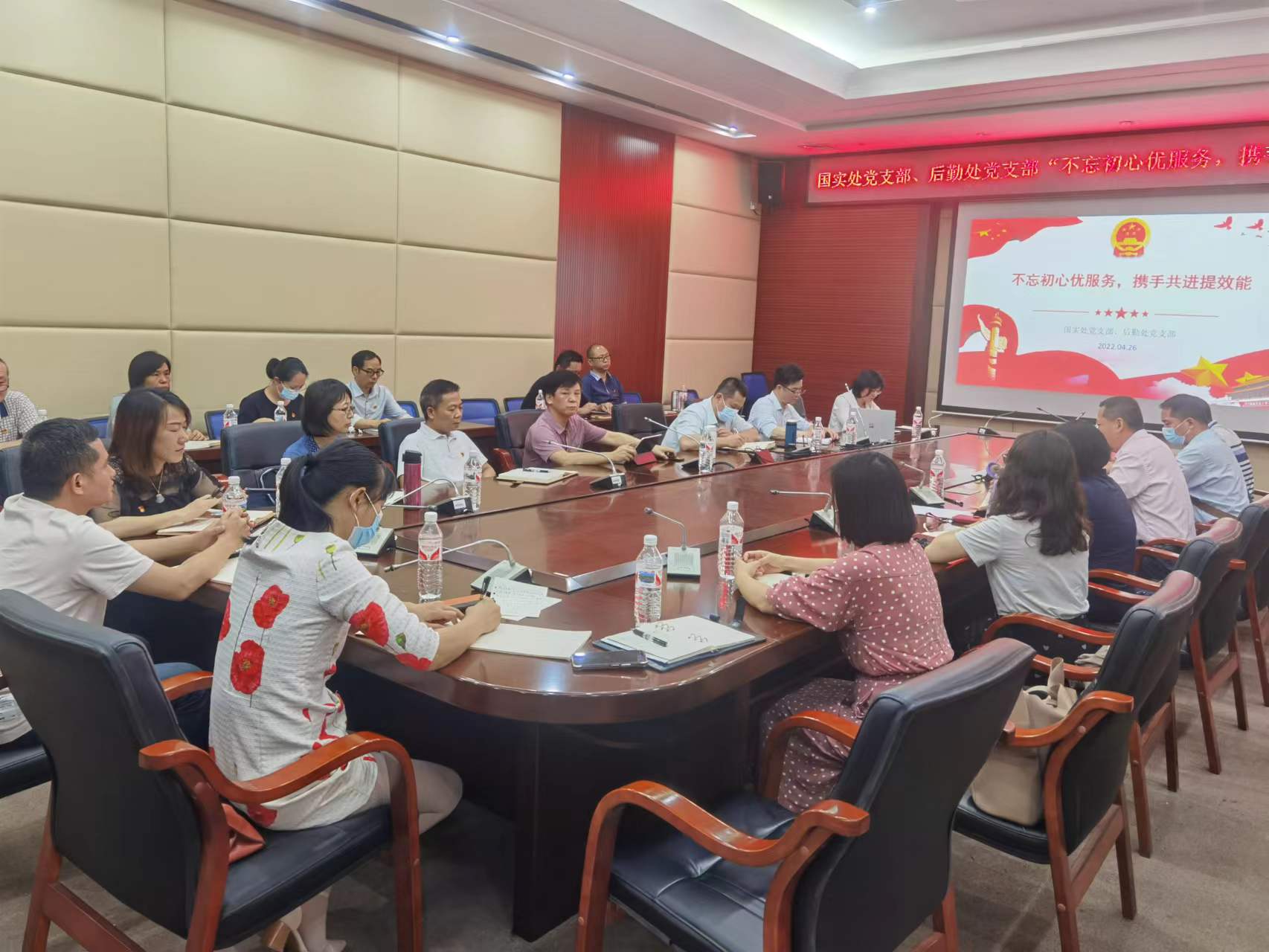 4月26日下午,后勤管理处党支部和国有资产与实验室管理处党支部在办公北楼3楼会议室联合开展“不忘初心优服务,携手共进提效能”主题交流会,共20多名党员参加主题交流会,学校机关党委纪委书记韦晓岚参加了会议。