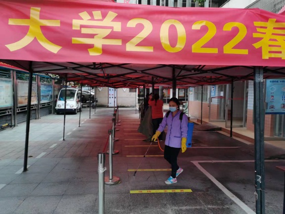 坚持把学生公寓防疫工作常态化,自2月21日开始严格落实对学生公寓园区内雨水沟、楼宇及公共区域等进行每日一次消毒工作,外围绿化带循环消杀,减少疫情传播隐患。