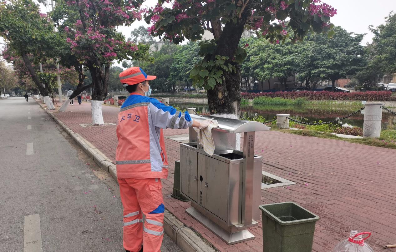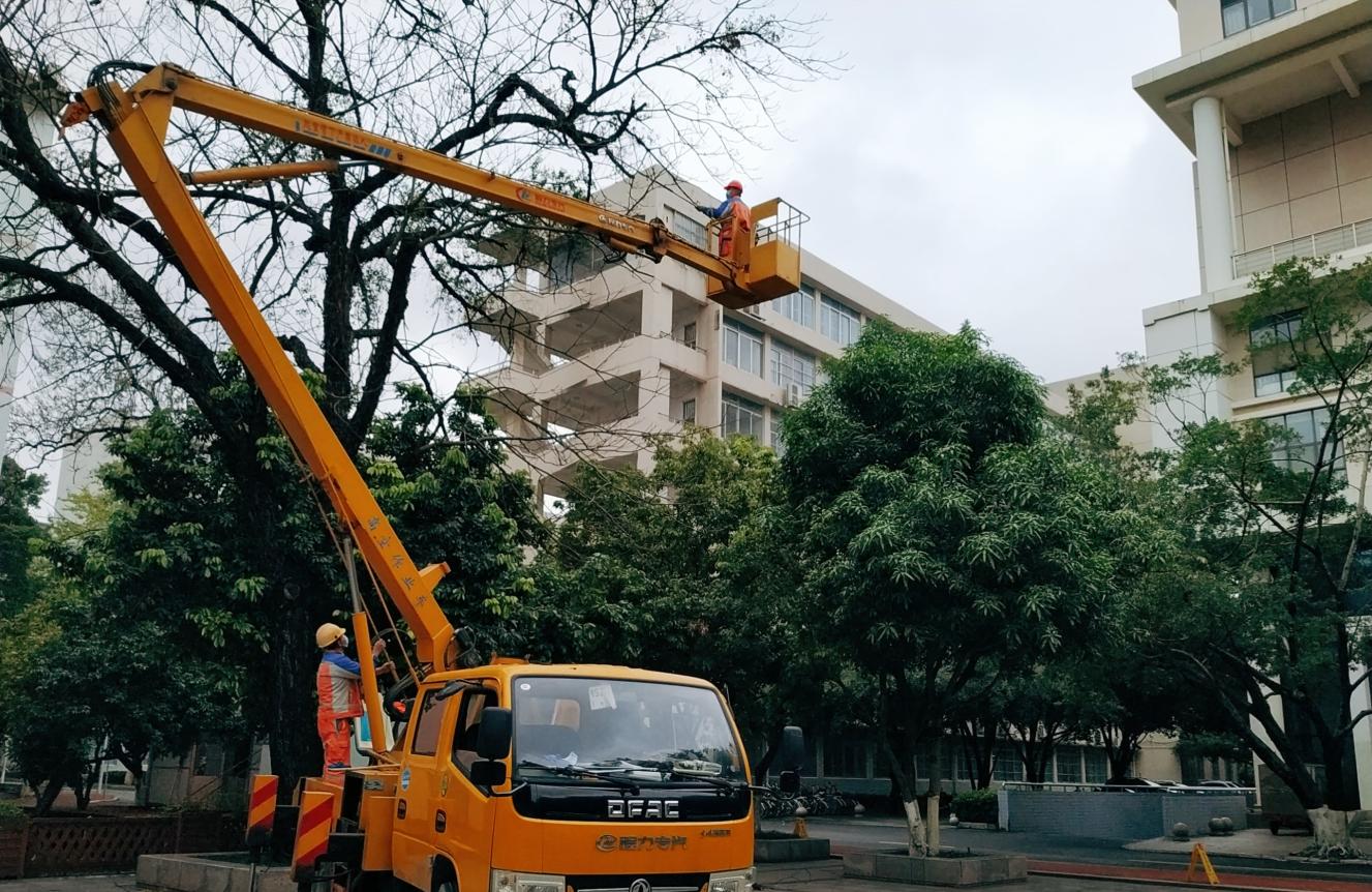 博世科物业对校园内进行环境整理大扫除工作,对全校教学区域开展危树排除、绿化修剪工作和病虫害防治工作,保证垃圾清运及时,抬高主干道和教学区的树木冠幅,处理树木干枯枝,消除安全隐患的发生。