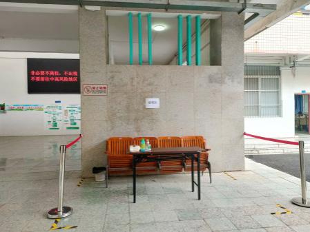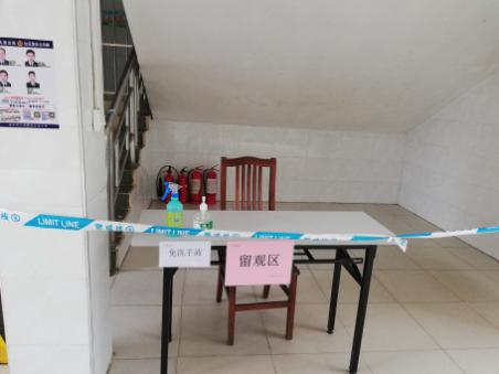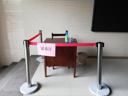 在教学楼设置留观区,配备防控物资,如遇发热症状的人员,可以快速启动防疫应急机制,有效避免交叉感染。