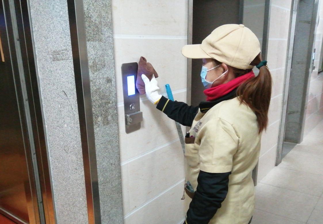 结合疫情防控要求,新大正物业除了做好校园公共楼宇相关区域的环境卫生外,重点采用含氯消毒液或者75%酒精,加强相关区域的防疫消毒工作,特别是公共楼宇主出入口、电梯、洗手间等人员密集场地,每日消毒不少于2次,每月消毒次数达到2000次以上;其次,针对教室等室内区域,加强通风消毒,每日不少于2次,每次不少于30分钟。
