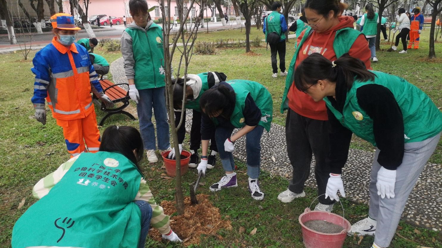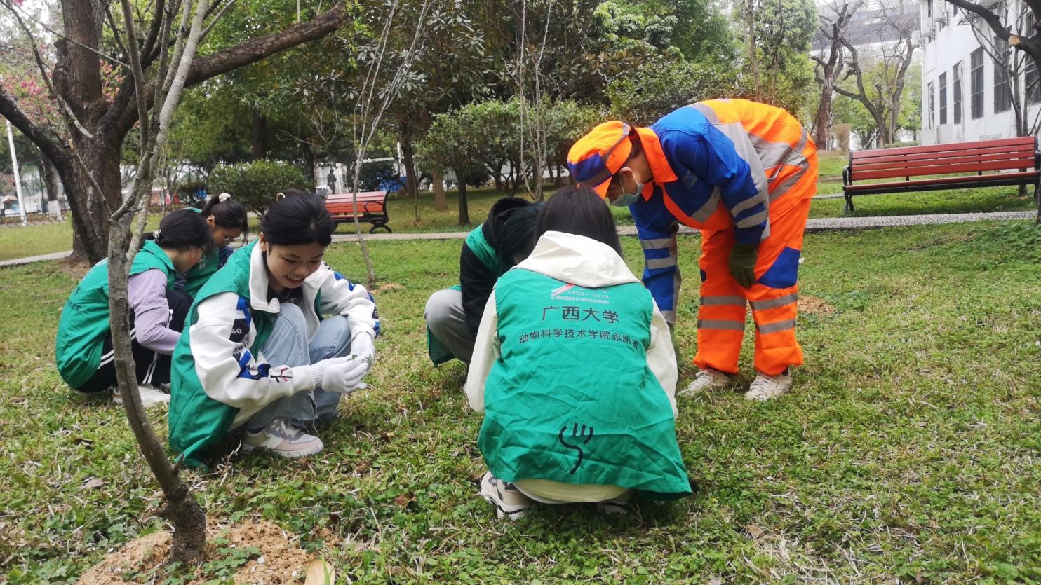 三月,最是一年春好时,春意盎然、万物复苏。三月恰逢春,我们迎来了第44个植树节。为响应国家植树绿化的号召,以植树节为契机,动科学院志愿者学生放弃周末休息时间,积极投身到一年一度植树节爱绿、护绿环保宣传活动中。3月12日下午,beats365亚洲版后勤管理处党支部联合博世科物业公司及beats365亚洲版动科院志愿者在校办楼北面沙梨园组织开展围绕“传承雷锋精神 弘扬时代新风”为主题的爱绿、护绿活动,一起来看看热火朝天的现场吧!