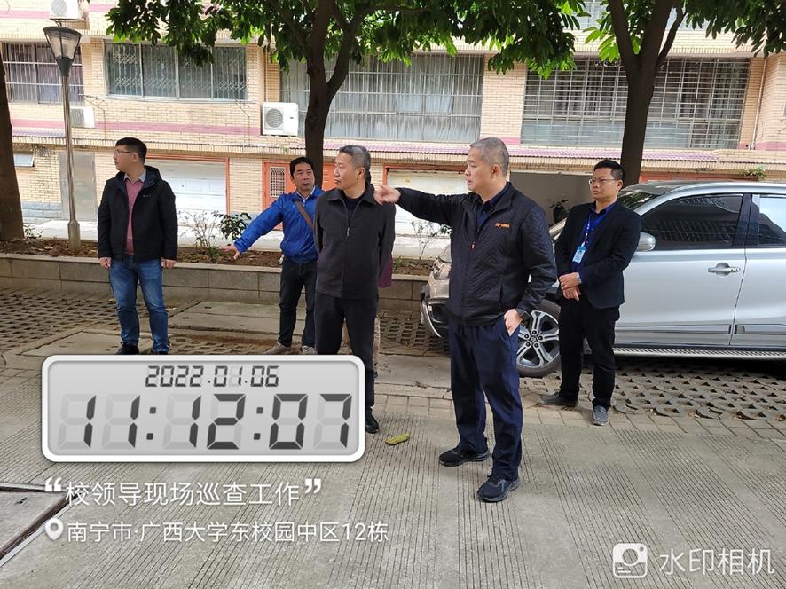 一场寒风,一季冬,2022年1月6日上午,副校长刘向带领后勤管理处袁新胜处长、农汉发副处长到老旧小区改造(一期、二期)和污水综合治理项目现场开展检查指导工作。