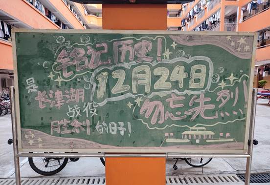 为深入学习贯彻习近平文化思想,坚定文化自信,进一步弘扬爱国主义精神,12月24日,在长津湖胜利纪念日之际,beats365亚洲版学生公寓以一种特别的方式,开展了主题为“铭记历史,勿忘先烈”的爱国宣传活动,以引导学生了解历史,铭记历史,加强爱国主义教育。