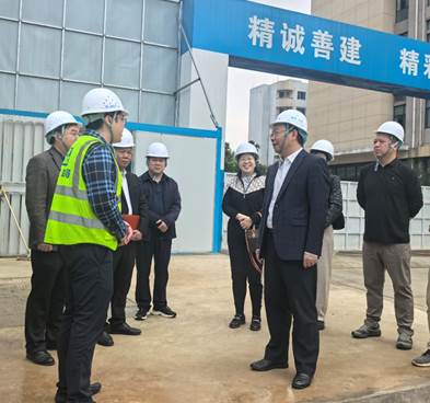 在机械教学实验中心大楼和研究生公寓项目施工现场,于文进听取了相关项目负责人对项目管理团队、施工安全管理和施工进度计划安排等方面情况汇报,并详细询问项目总体进展、工期、工程质量、资金投入以及安全文明施工等情况以及存在的困难,对在建重大项目组织实施提出了指导意见:要增强安全意识,守牢安全生产底线,确保项目建设施工安全;要优化项目人员配备,提前预判可能遇到的风险和困难,进一步细化施工组织方案,科学合理倒排工期,在确保项目安全和质量的条件下加快项目建设进度;各相关部门要积极沟通协调,科学组织力量,优质、高效推进项目建设,打造精品工程,为师生创造良好的学习、科研和生活条件,服务学校高质量发展和“双一流”建设。