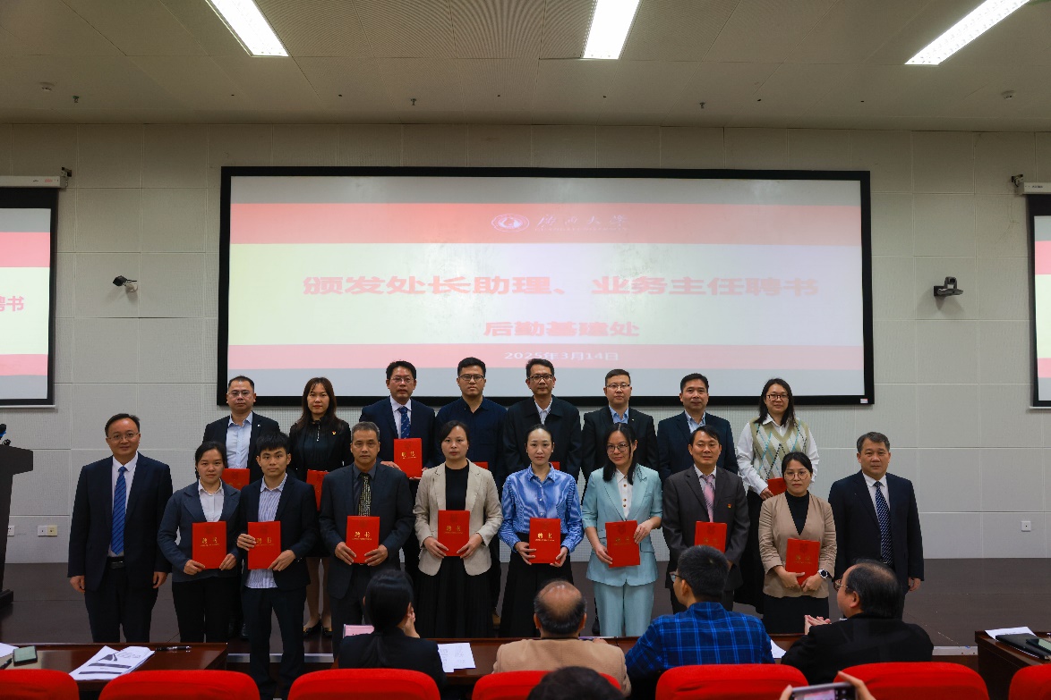 第一个环节是为处长助理和业务主任颁发聘书,处党委书记黄必春和党委副书记、处长余波分别为新聘任的1名处长助理和15名业务主任颁发聘书并合影留念。