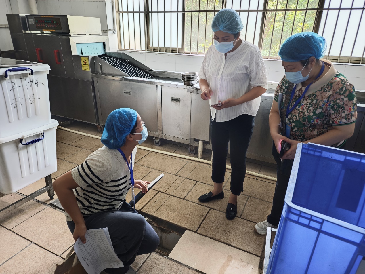 本次检查由学校食品安全管理委员会牵头,督查办、学工处、保卫处、校团委、校工会、国实处、后勤处、资产经营公司、校医院、朴诚后勤公司及各附属幼儿园、中小学共同参与,组成两个联合检查小组,对全校食堂、超市、食品经营商户等重点单位进行了深入细致的实地检查。检查围绕制度建设、从业人员管理、原料采购贮存、加工制作、餐具消毒、环境卫生及秋季食源性疾病防控等关键环节展开。