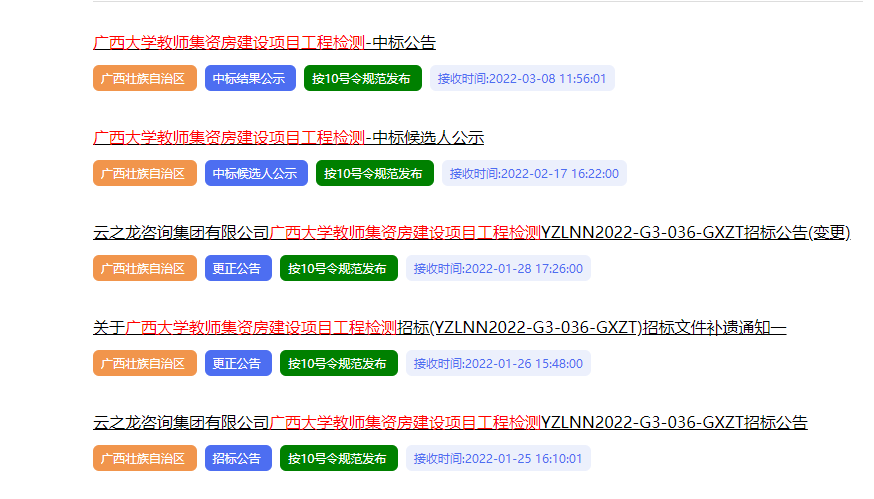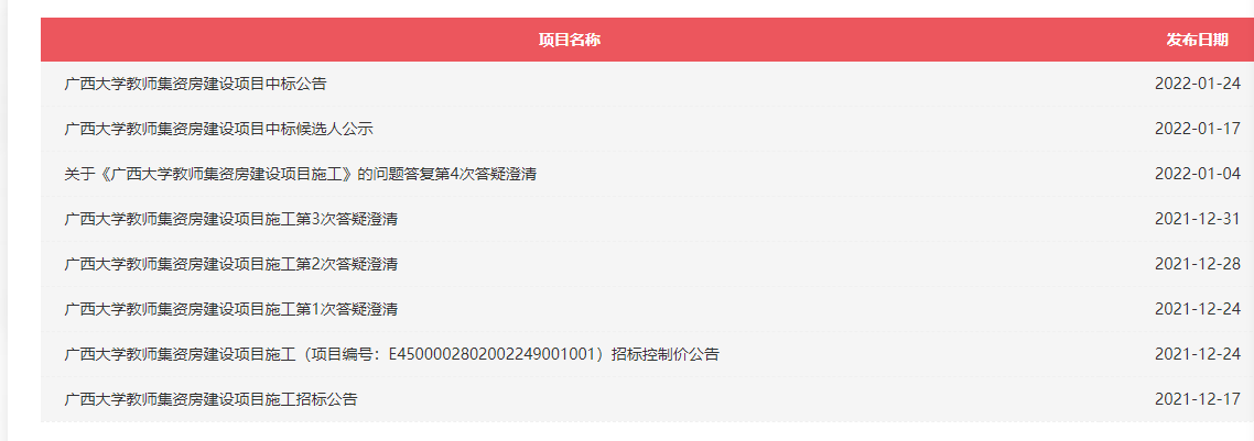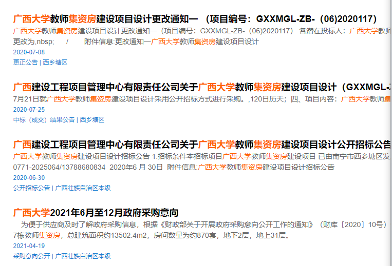 2. 施工图设计招标4次。在广西政府采购网http://www.ccgp-guangxi.gov.cn/发布有关公告,以下图片截自广西政府采购网。