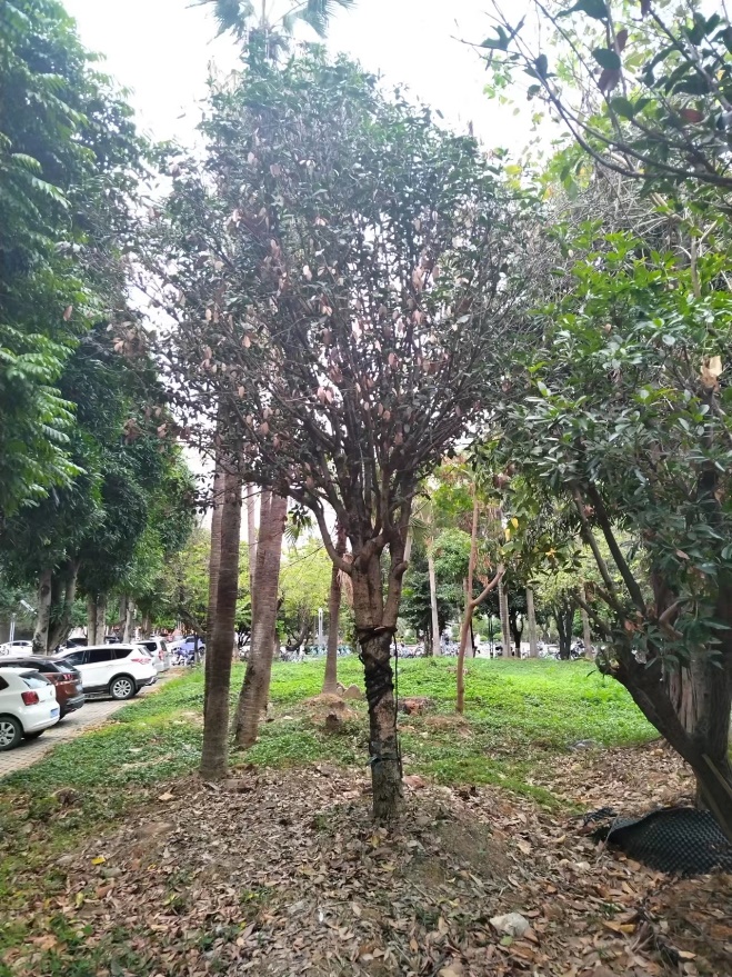 3.从校内假植地移植一株生长良好的桂花树植于原树池内。所移植的桂花树(见附图2、3)胸径约30cm,高约6-7m,全冠。2018年断根,目前假植在假植地内。按照树木移植技术规范移植。包括不限于疏剪枝条,尽量保留冠幅,树池消毒,挂营养液等;